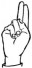 На ћирилици написано РАДЕ АРСИКИН састоји се из 11 слова [?]. Исписано ћириличном једноручном азбуком за глувонеме: